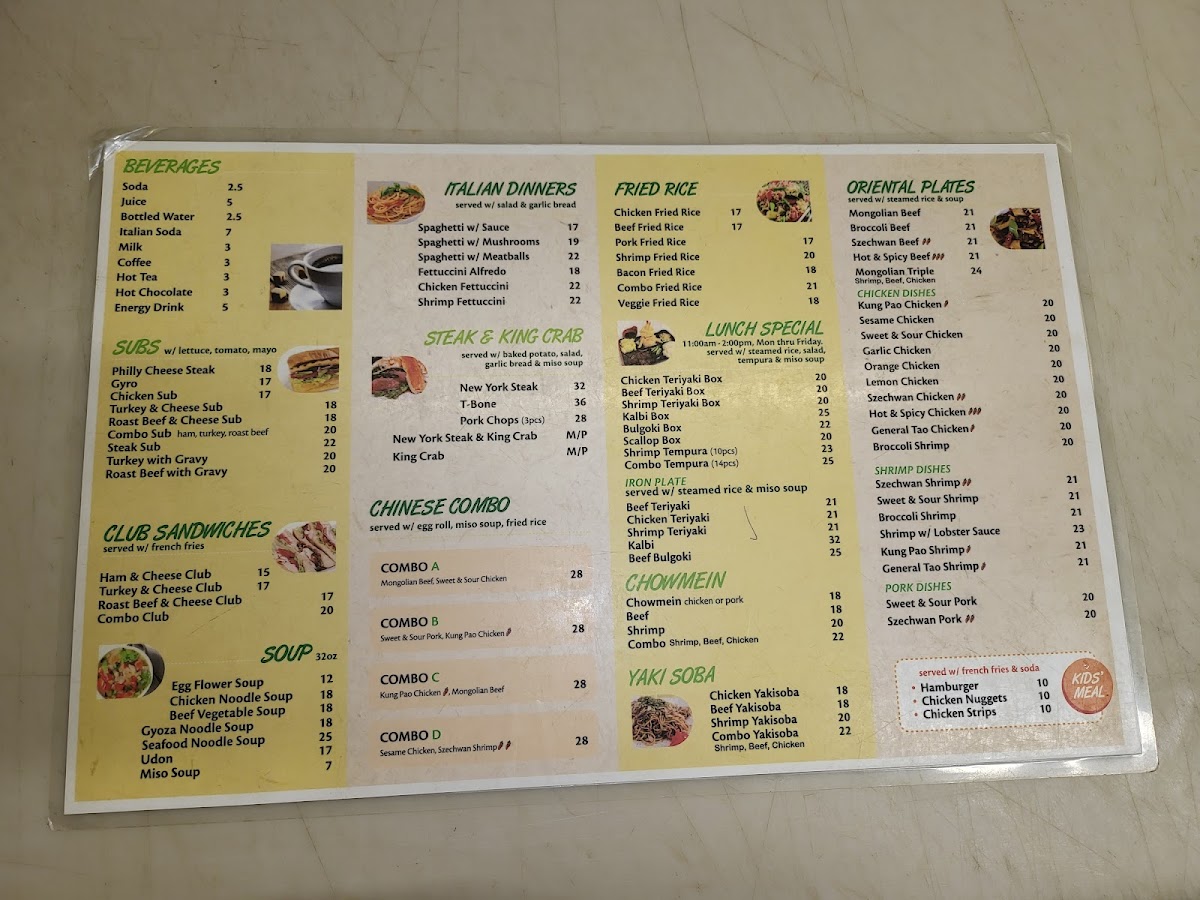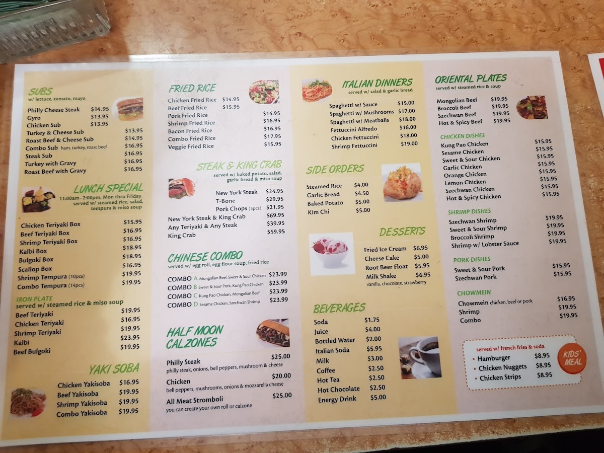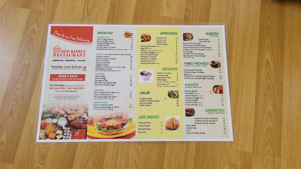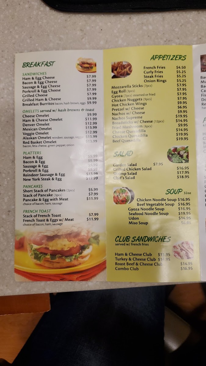 From a reviewer’s perspective, the menu at Red Basket offers an impressively wide selection that ranges from hearty subs like Philly Cheese Steak, Gyro, Chicken Sub, Turkey & Cheese Sub, and Roast Beef & Cheese Sub to satisfying lunch options such as Chicken Teriyaki Box, Beef Teriyaki Box, Shrimp Teriyaki Box, Kalbi Box, and Bulgoki Box. The variety continues with iron plate dishes like Beef Teriyaki, Chicken Teriyaki, and Shrimp Teriyaki, along with noodles such as Chicken Yakisoba, Beef Yakisoba, and Combo Yakisoba. Classic comfort foods including Spaghetti W/ Meatballs, Fettuccini Alfredo, burgers like Bacon Cheeseburger, and breakfast favorites such as the Denver Omelet and Stack Of Pancakes add even more variety. With additional choices like Mongolian Beef, Kung Pao Chicken, Szechwan Shrimp, Sweet & Sour Pork, and desserts like Fried Ice Cream and Cheese Cake, the menu feels extensive and satisfying, making Red Basket a place where almost anyone can find something appealing.